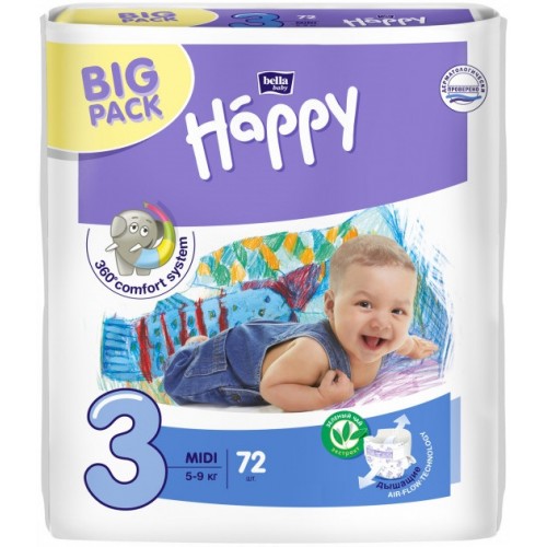 Белла подгузники Happy МАЛЫШ №3 миди А-72 /5-9 кг/