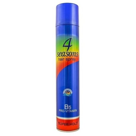 Лак для волос 4 Seasons SUPER HOLD (265 мл), фиксация 4 из 5, содержит Pro-Vitamin B5 и Протеины шёлка.